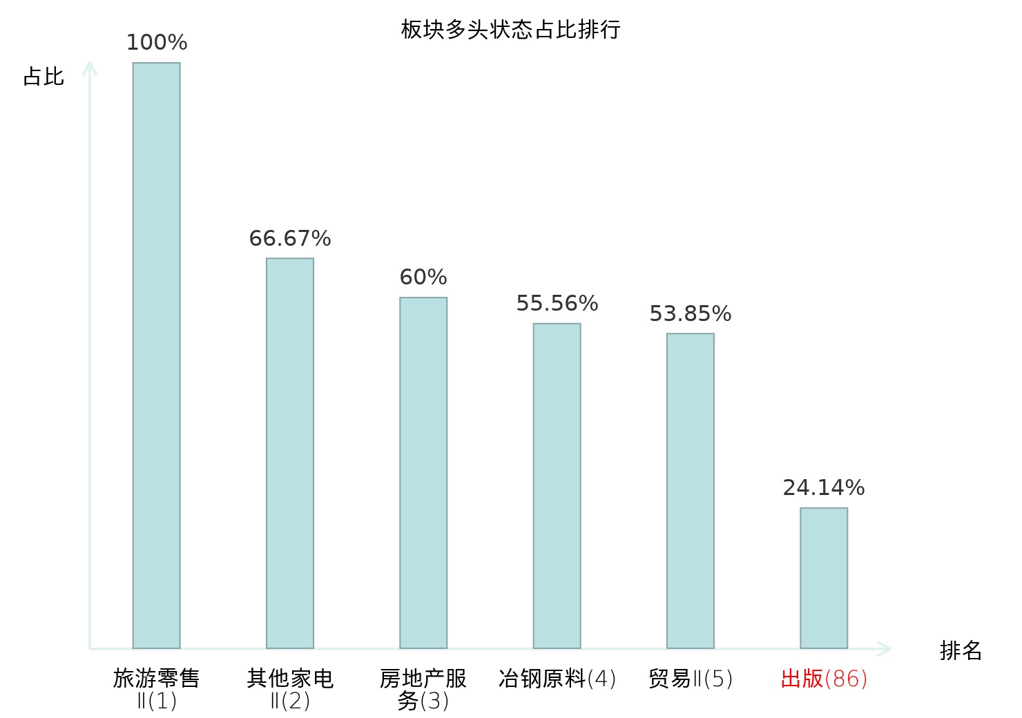 全市场所有行业板块中主力多头状态占比排名中,旅游零售Ⅱ板块位居第一。保险Ⅱ板块名次提升最快,较昨日上升65位。