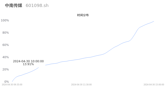 601098中南传媒2024年04月30日成交23.25万手,成交金额2.76亿元,相较昨日缩量8.61万手,换手率1.29%,成交清淡。