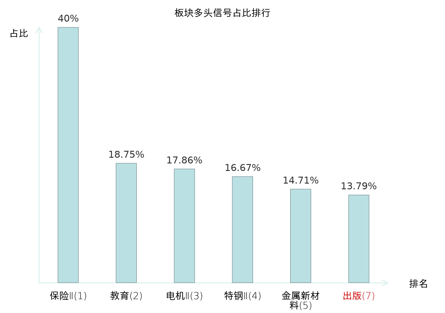 全市场所有行业板块中主力多头信号占比排名中,保险Ⅱ板块位居第一。保险Ⅱ板块名次提升最快,较昨日上升124位。