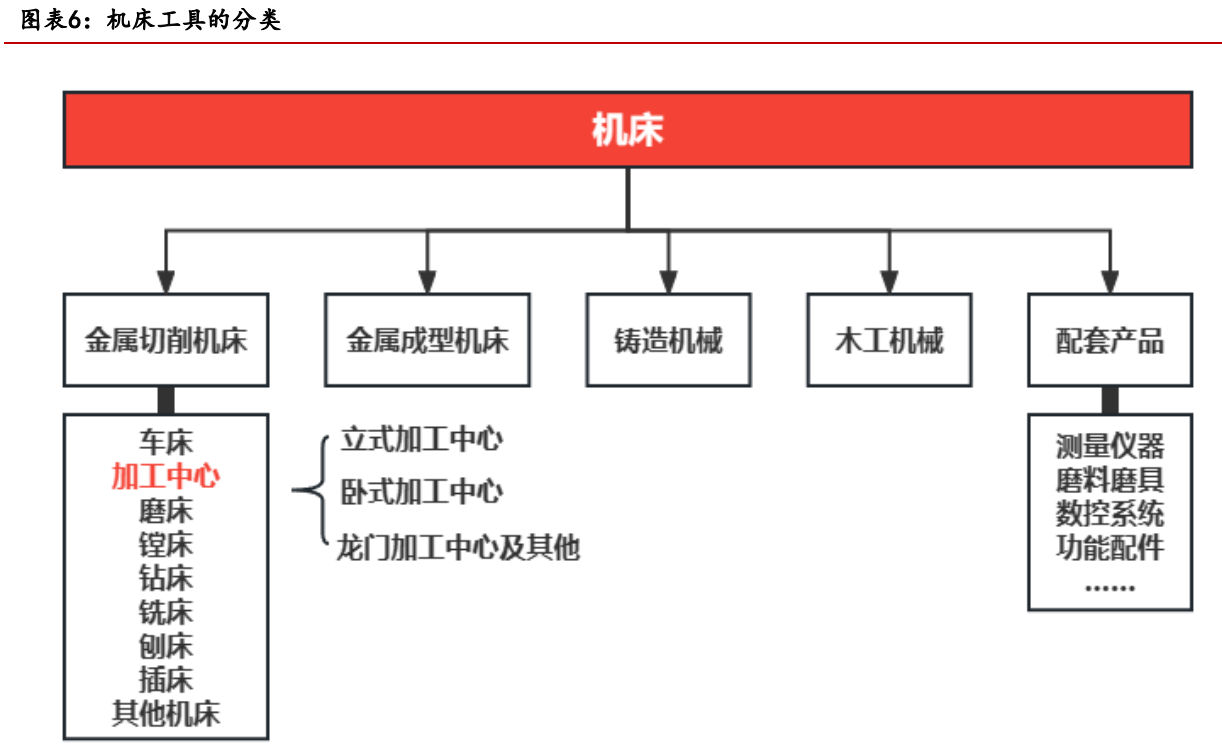 中国机床工具工业协会将机床及相关工具分为金属切削机床、金属成形机床、木工机床、铸造机械等整机设备领域。其中金属切削机床是我国机床工具行业的重要组成部分,其数量最多、使用最为广泛,因而机床有时会狭义的指代金属切削机床。