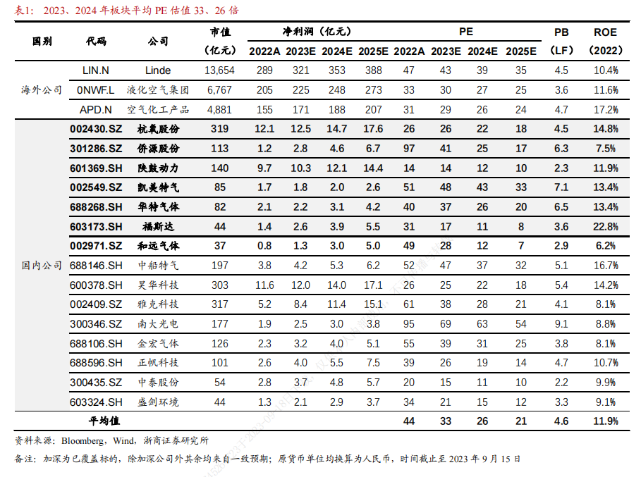 供给端,在工业气体行业,海外目前可比公司林德、法液空、空气化工产品对应的市值折合人民币达数千亿乃至上万亿市值。中国工业气体行业近2000亿元市场,过去5年复合增速11%。在国产替代提速背景下,国内龙头份额提升潜力巨大。