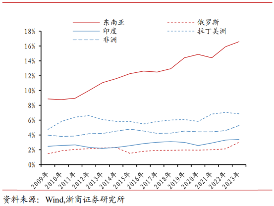 我国出口东南亚、俄罗斯、拉丁美洲等占比大幅提升