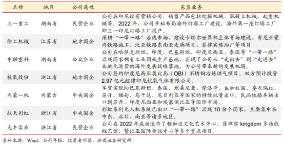 中泰证券认为,短期看,“一带一路”十周年之际,区域合作有望深化,建议关注热点国家/地区强布局企业。长期看,融入东道国社会对于当地业务扩展、项目降本增效帮助较大,品牌效应有望增厚利润,建议关注公司属地化、国际化进程;合作关系紧密地区建设需求方向持续变化,相关公司或受益建设重点转型、产业投资需求。我们建议重点关注海外业务竞争力强、增长可持续标的——建筑央企、国际工程公司、工程装备央企上市子公司。