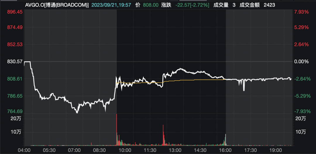 据报道,有传闻称,谷歌计划最早于2027年放弃博通公司(Broadcom),转而自主研发AI服务器芯片。据知情人士表示,今年早些时候,谷歌与博通在芯片定价问题上未能谈拢。为此,谷歌决定放弃博通作为其AI芯片tensor processing units(TPU)的供应商。受此影响,博通股价盘前一度跌超7%,但随后谷歌发布声明称,双方的合作没有任何变化。博通股价跌幅大幅收窄,截至收盘,跌2.67%。