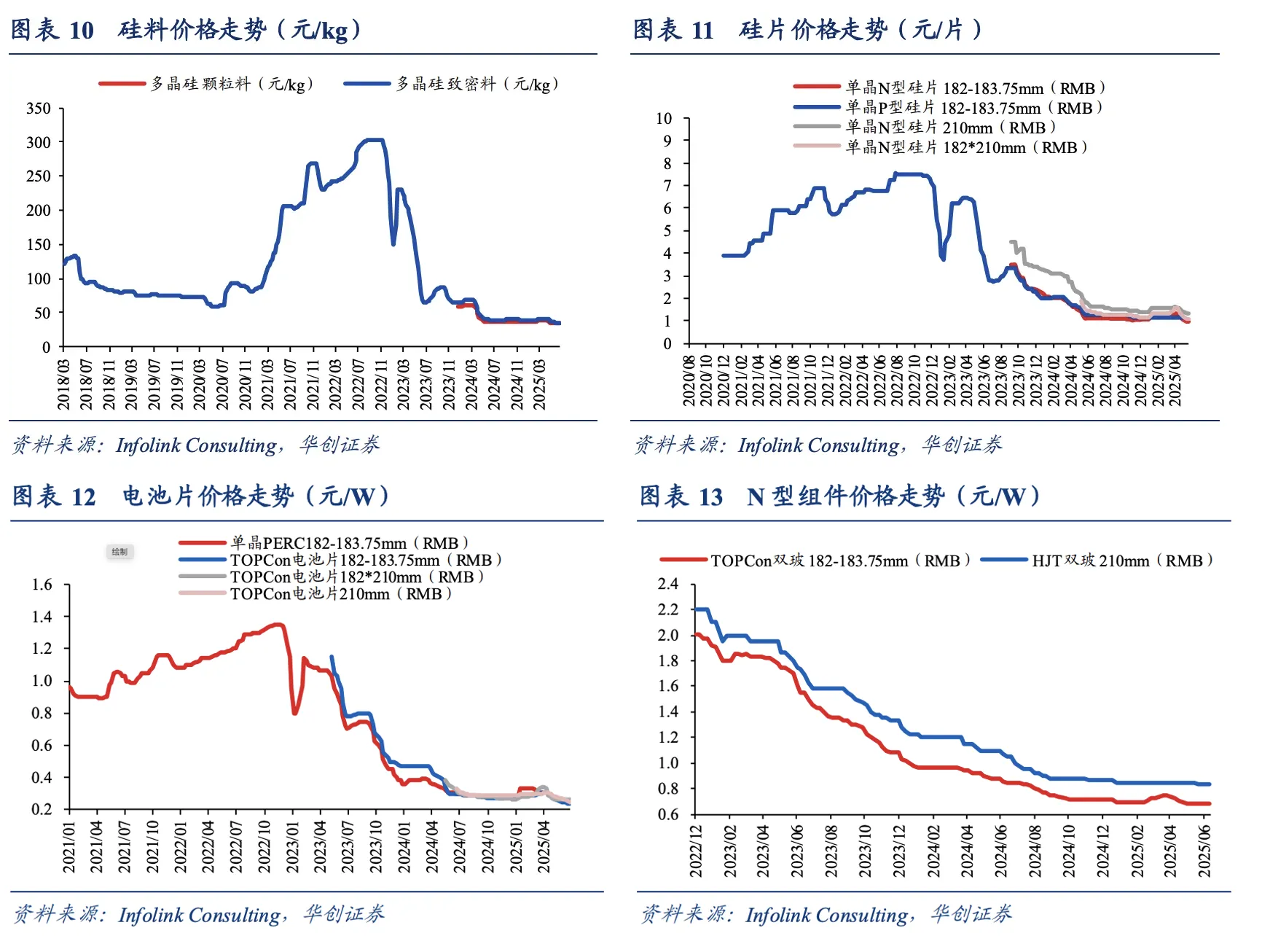 值得一提的是,当前光伏行业价格及盈利均处于底部位置,板块估值水平同样较低。据华创证券跟踪数据显示,截至7月4日,A股光伏设备行业PE估值分位数仅为近10年以来13.8%分位数,产业链价格也持续低位徘徊。