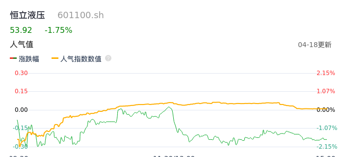 04月18日,恒立液压收报53.92,股价涨幅-1.75%,成交金额4.56亿元,换手率0.63%。