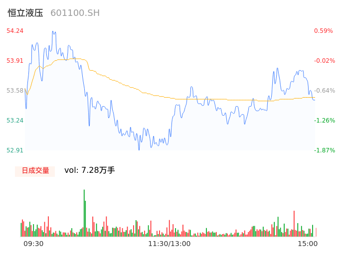 04月19日,恒立液压收报53.50,股价涨幅-0.78%,成交金额3.90亿元,换手率0.54%。