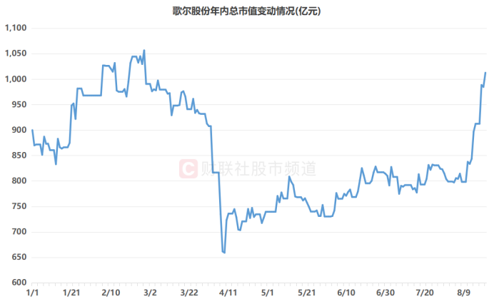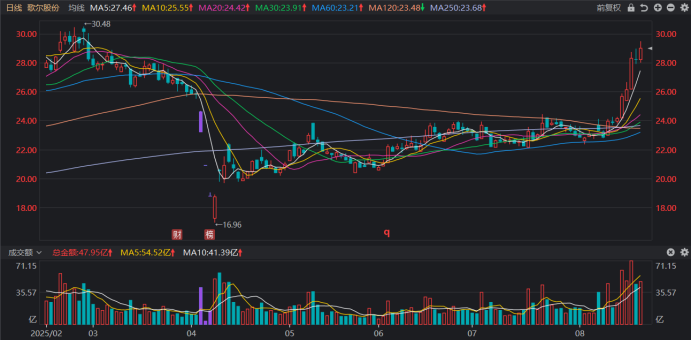 注:歌尔股份近期连续上涨(截至8月20日收盘)