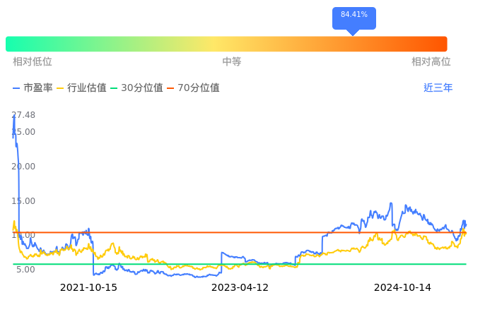 2024年10月14日,昊华能源上涨2.77%收于9.64,今日成交金额2.55亿。下文将从市盈率PETTM、市净率PB、市现率3个角度去分析公司估值情况。