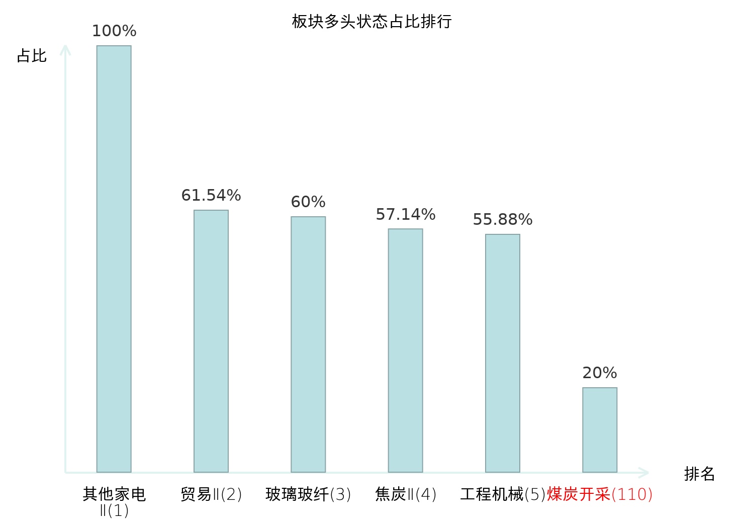 全市场所有行业板块中主力多头状态占比排名中,其他家电Ⅱ板块位居第一。航海装备Ⅱ板块名次提升最快,较昨日上升98位。