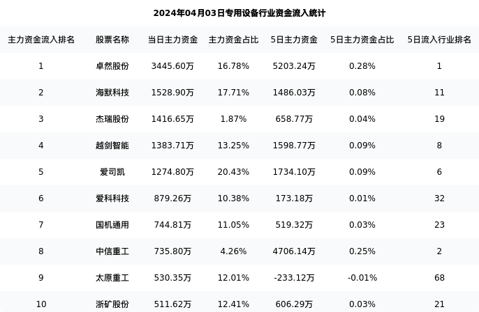 从主力资金流向来看,专用设备行业今日主力资金流入33.20亿元,在所有申万二级行业中排名:121/131。