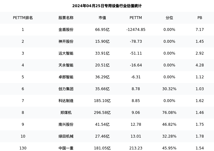 从估值角度看:中国一重最新市盈率PETTM为213.23,在行业内排名127/167,处于45.95分位。