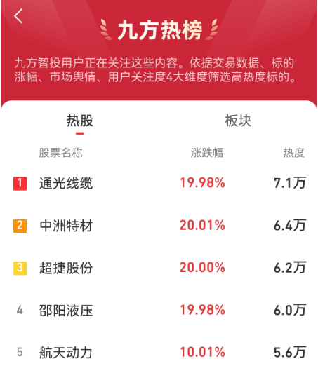 九方智投:通光线缆,中洲特材,超捷股份,邵阳液压,航天动力