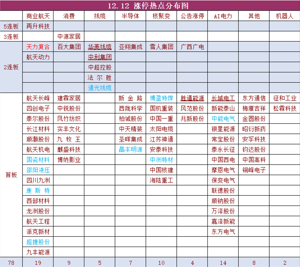 点评:商业航天依旧是上周五板块赚钱效应最强的板块,而且是连续三周的周五爆发涨停潮了,而且上周五盘前讲的机构思路盘面也是给了验证,很多机构票走出了强加速,目前就是2条线,一条线是国外的马斯克的SPA上市预期的西部材料,再升科技,天力复合这3个,还有一个就是国内的国家队就是整个“航天”系航天机电,航天动力,航天电子等等这种,民营的超捷股份等等,上周五一直说的低位的,上周五也有开始表现了,这里就不重复再提了。