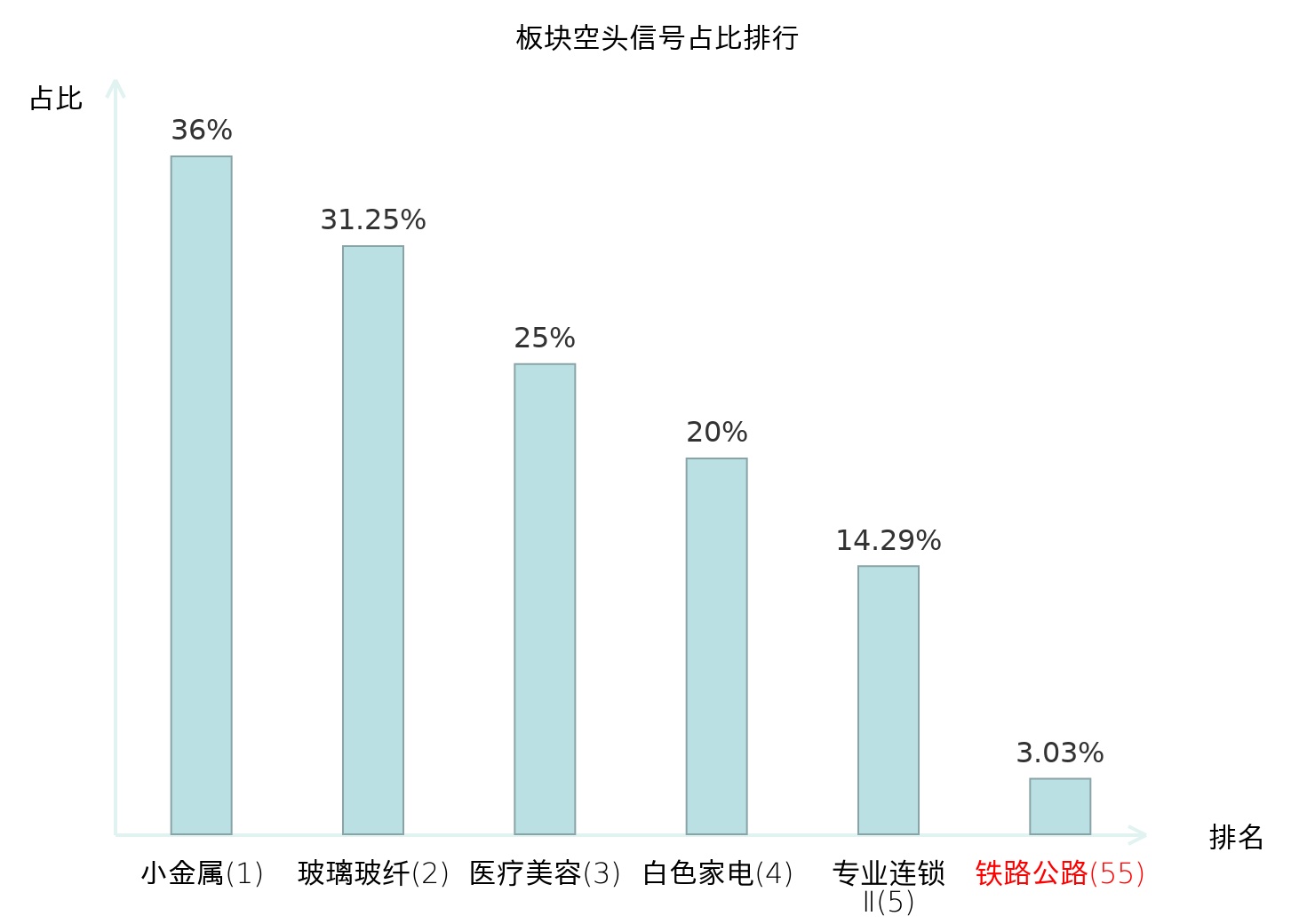全市场所有行业板块中主力空头信号占比排名中,小金属板块位居第一。光伏设备板块名次提升最快,较昨日上升97位。