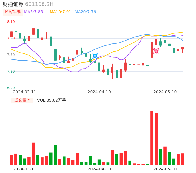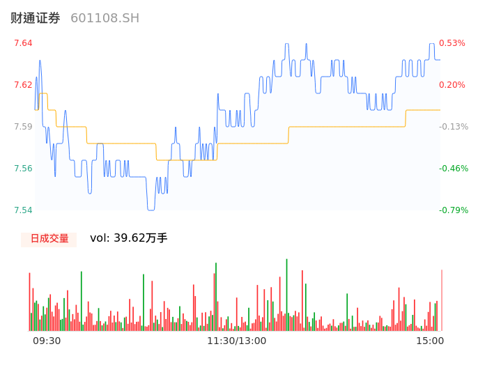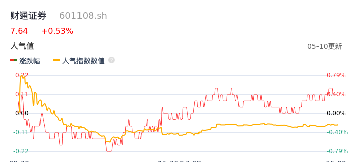05月10日,财通证券收报7.64,股价涨幅0.53%,成交金额3.01亿元,换手率0.85%。