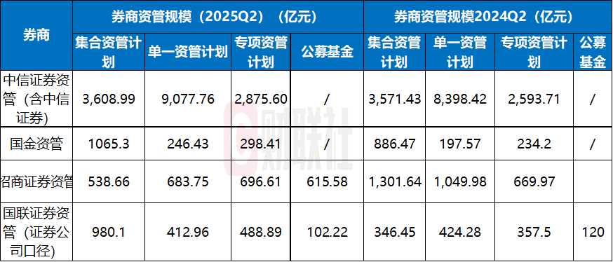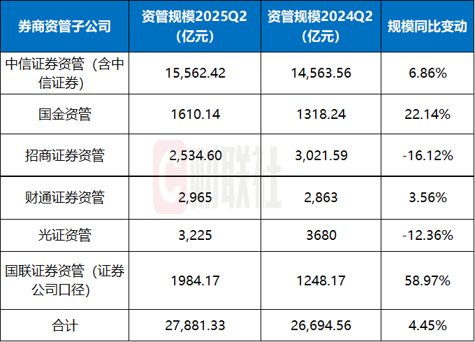 中信证券资管规模占比较高,国联证券资管增速领跑