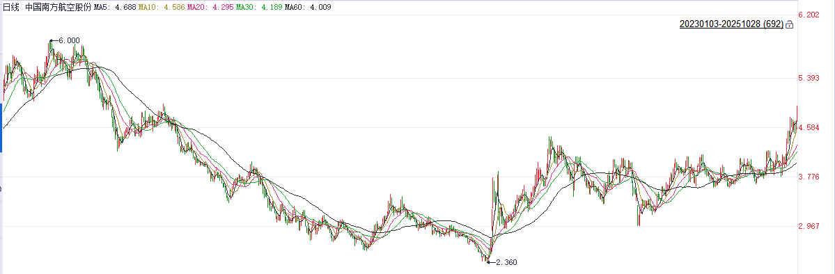 从上图来看,南方航空表现尤为抢眼,该公司股价创下2023年7月底以来新高。