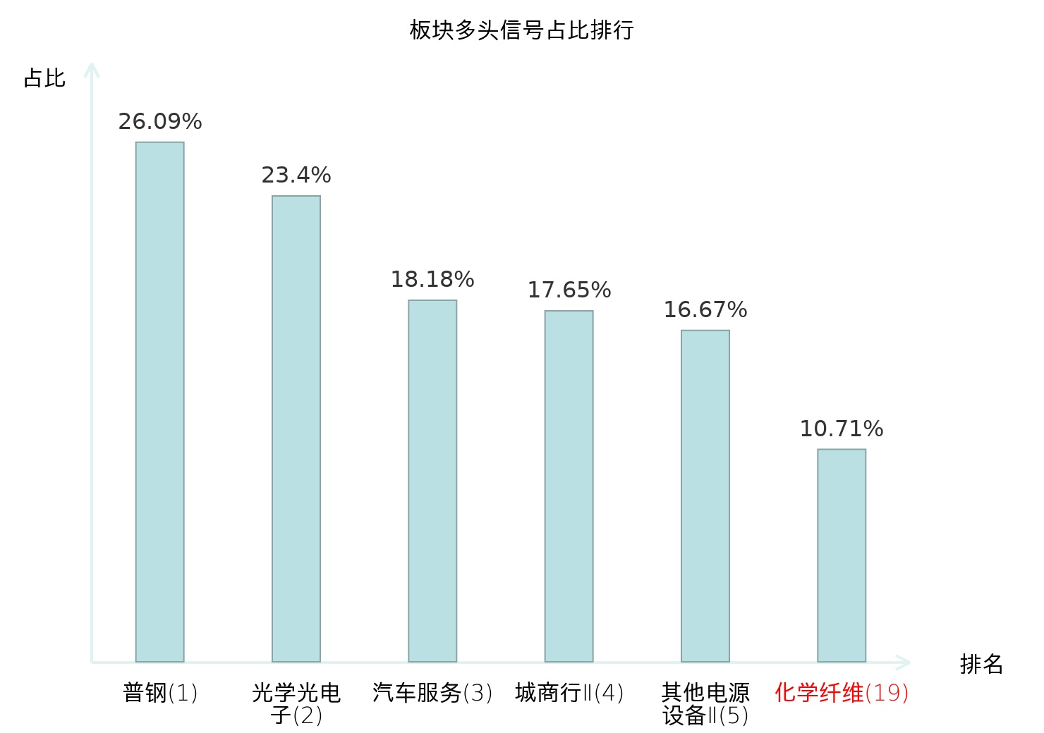 全市场所有行业板块中主力多头信号占比排名中,普钢板块位居第一。国有大型银行Ⅱ板块名次提升最快,较昨日上升116位。
