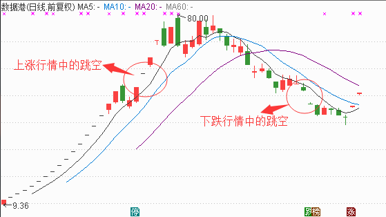 跳空行情,经常会引发股民的激动或悲观,很明显,上升趋势中,发生跳空,股民会认为股价涨势很强,兴奋不已;反之,下跌行情中,发生跳空,则倾向于恐慌出逃。