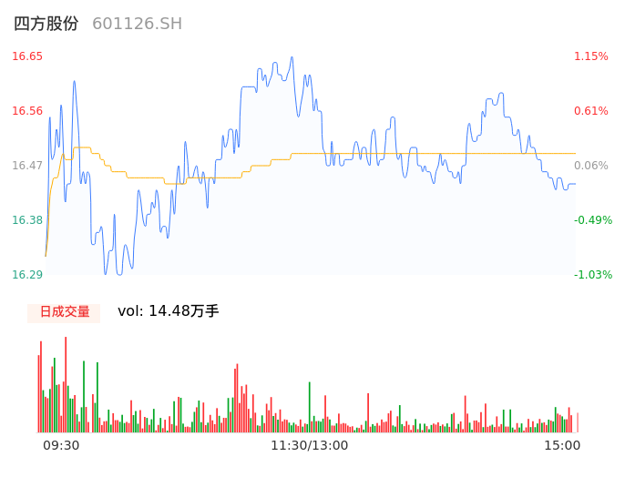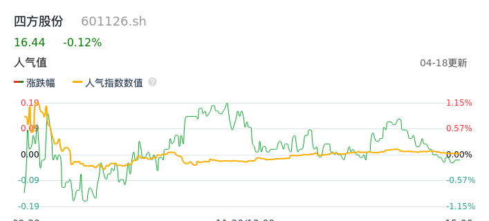 04月18日,四方股份收报16.44,股价涨幅-0.12%,成交金额2.40亿元,换手率1.79%。