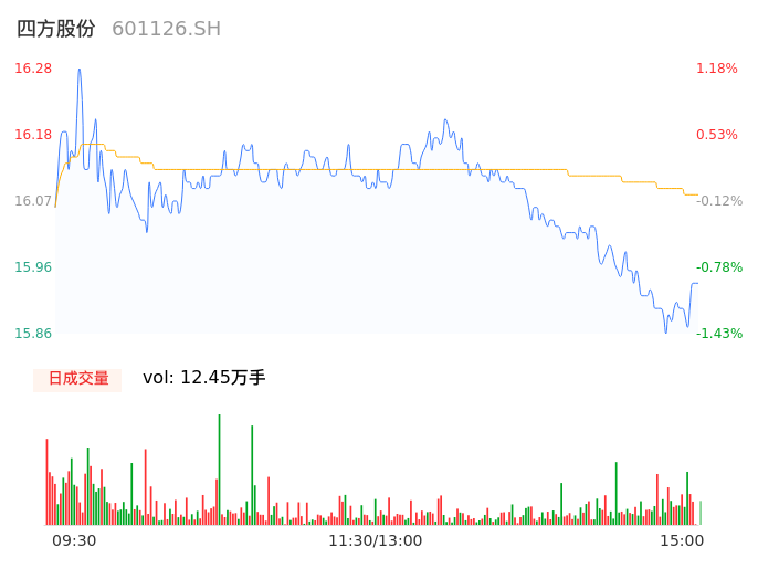 04月12日,四方股份收报15.93,股价涨幅-0.99%,成交金额2.00亿元,换手率1.53%。