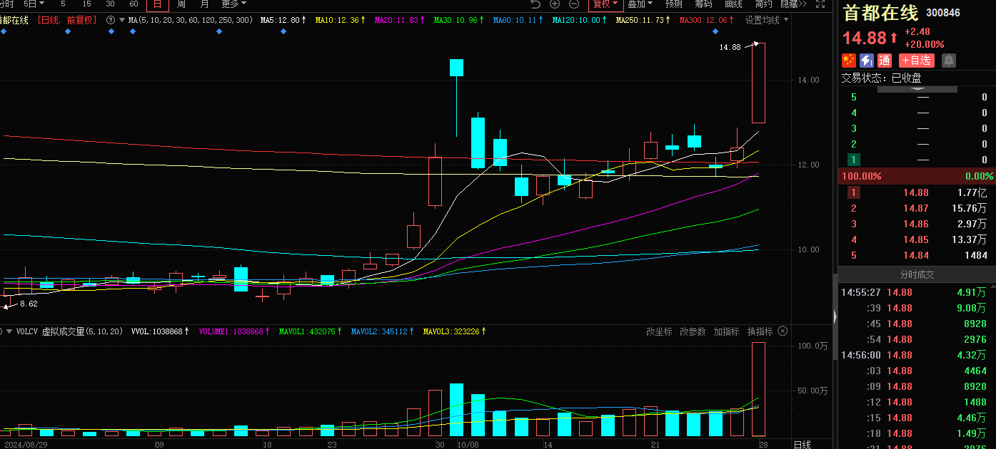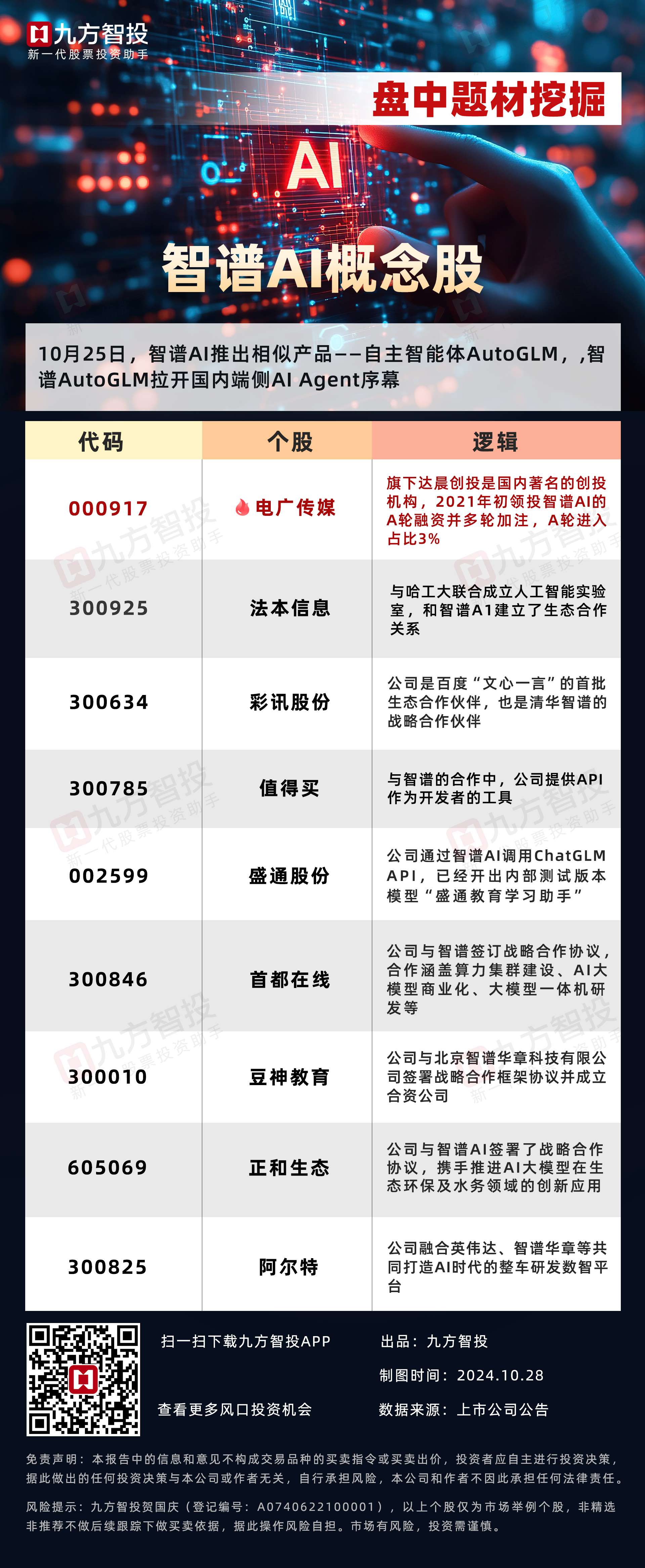 异动新题材方向是AI智谱方向,其中逻辑最正的是电广传媒,已经连续两日大单一字板,而市场今日继续加强此逻辑,首都在线与豆神教育都出现20cm涨停