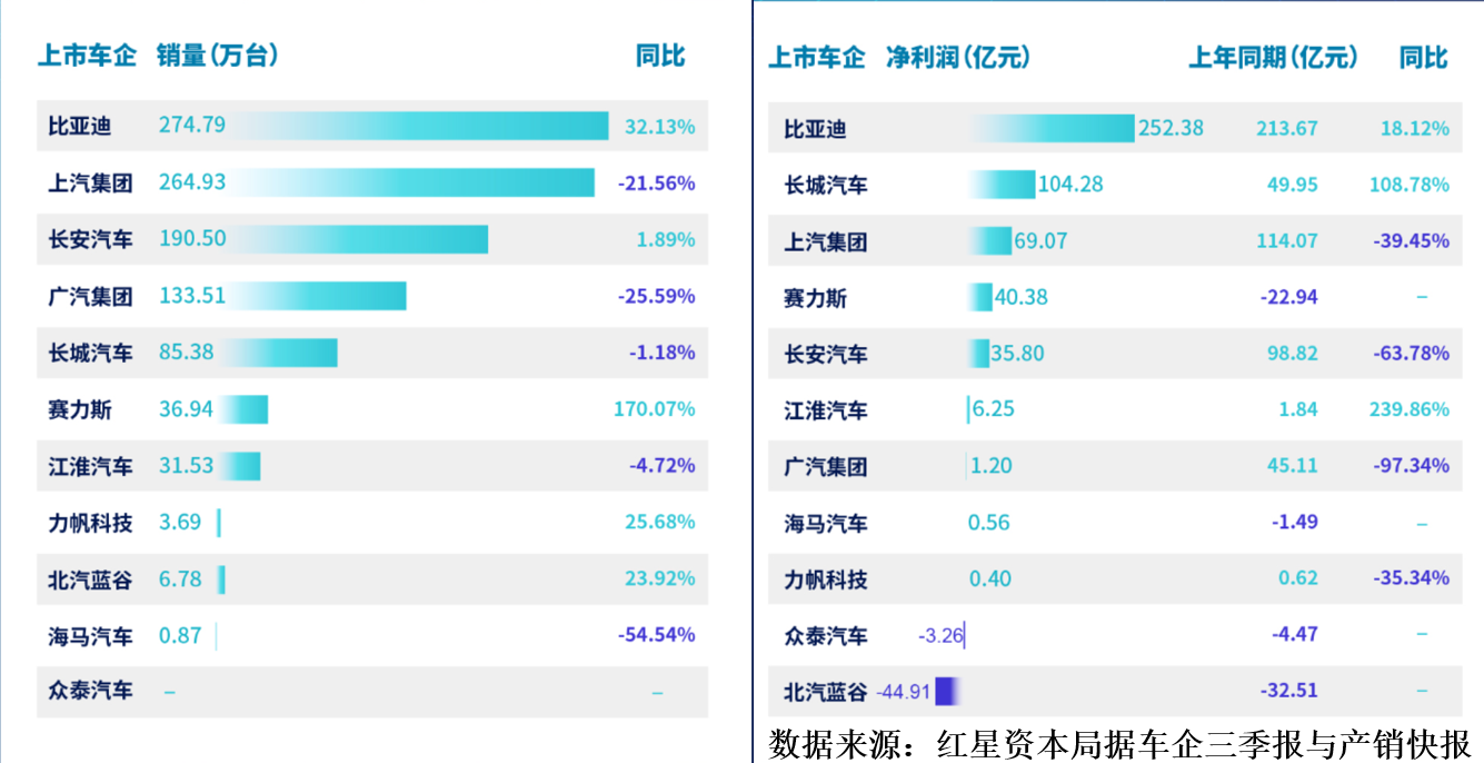 可以看到工业机器人与新能源汽车板块9月工业增加值同比与环比大幅改善。落实到行业公司业绩上看:新能源汽车公司业绩靓丽,在财政刺激以旧换新支持下汽车行业走出了复苏态势。