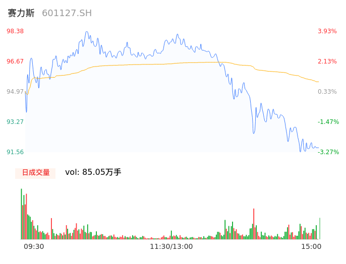 04月18日,赛力斯收报91.78,股价涨幅-3.04%,成交金额81.62亿元,换手率5.66%。