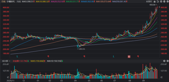 宁王股价站上400元,融资余额创历史新高