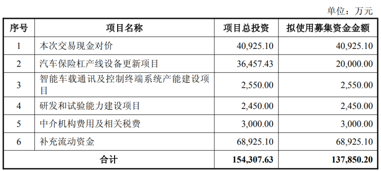 在募集配套资金方面,渤海汽车拟募资总额不超过13.79亿元,用途包括支付本次交易现金对价、汽车保险杠产线设备更新项目、智能车载通讯及控制终端系统产能建设项目、研发和试验能力建设项目、中介机构费用及相关税费,并补充流动资金。