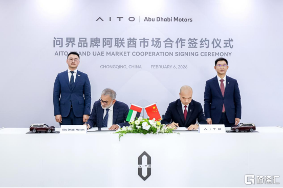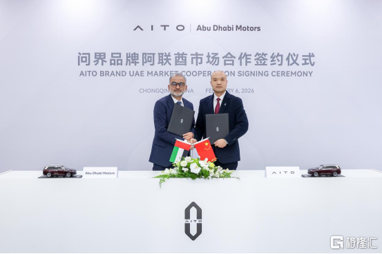 2026年2月6日,中国高端智能汽车品牌 AITO 与阿联酋头部豪华汽车经销商集团 Abu Dhabi Motors(以下简称 ADM)在重庆正式签署战略合作协议。赛力斯汽车海外BU总裁王进与ADM CEO Syed Faiz Karim 代表双方签署协议,赛力斯汽车总裁何利扬与阿卜杜拉·本·穆罕默德·本·布蒂·阿勒哈米德阁下私人办公室中国区负责人赵頔见证签约。这次合作标志着AITO 在海外高端新能源市场的布局取得关键进展,正式开启品牌全球化的新篇章。