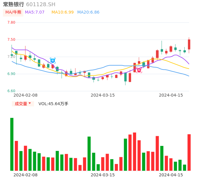 04月15日,常熟银行收报7.50,股价涨幅3.02%,成交金额3.41亿元,换手率1.73%。