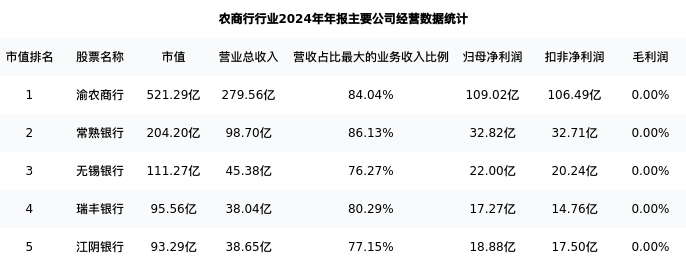常熟银行最新报告期数据为年报,下表汇总了农商行行业内市值靠前的公司年报主要经营数据