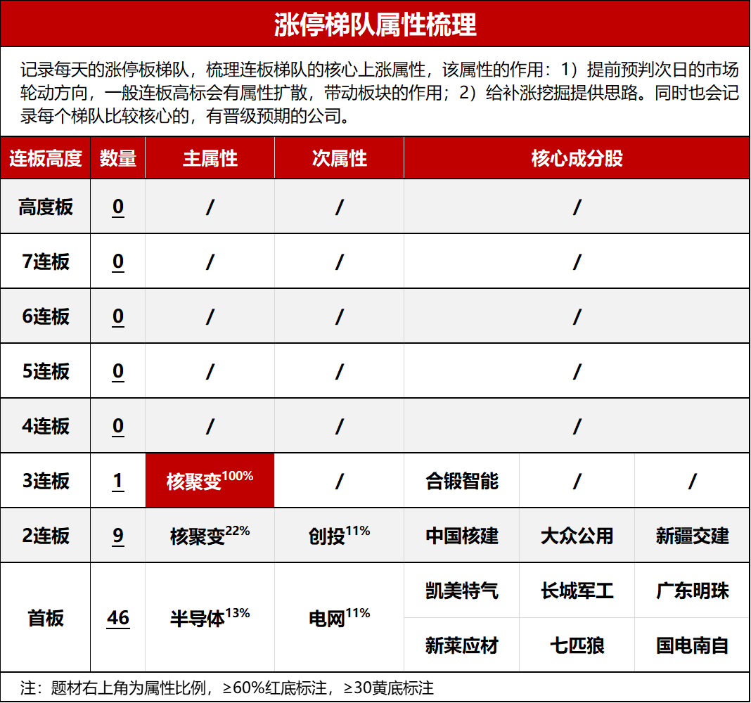 点评:可控核聚变是上周四启动高潮,周五的分歧还算良性的,周末也有消息催化本周又是第30届国际原子能机构聚变能大会(FEC 2025)以及世界聚变能源集团部长级会议,如果今天有错杀可以重点留意,本周是会议催化,下周是十五五的政策预期。合锻智能今天正常就要开板了,看下承接情况,安泰科技跟永鼎股份都有大游资的身影,相对低位的还有王子新材,百利电气,中洲特材