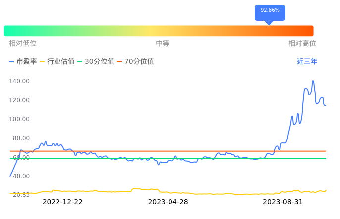首创证券当前市盈率PETTM为114.62,在所属的证券中,市盈率PETTM排42名。前5名分别为华泰证券PETTM11.78、国泰君安PETTM11.92、国信证券PETTM13.79、广发证券PETTM13.88、招商证券PETTM14.53。从PETTM估值走势数据来看,首创证券当前市盈率PETTM为114.62,超过近3年92.86%的历史数据。