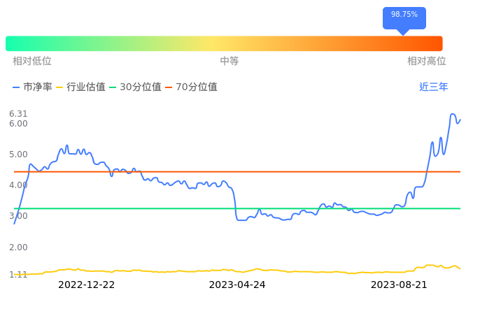 首创证券当前市净率PB为6.40,在所属的证券中,市净率PB排49,前五名分别为海通证券市净率0.80、华创云信市净率0.86、国元证券市净率0.93、国泰君安市净率0.95、华泰证券市净率1.01。首创证券当前市净率PB为6.14,超过近3年98.75%的历史数据。