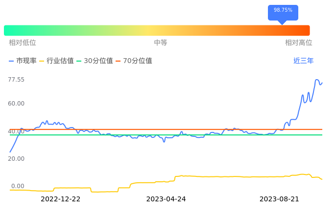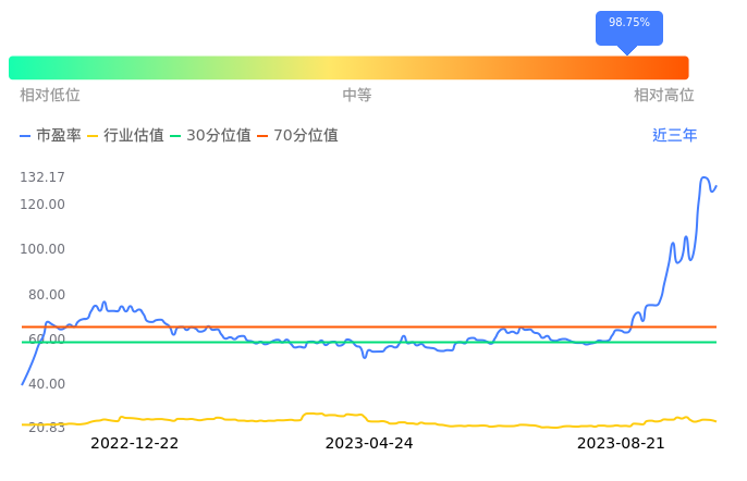 首创证券当前市盈率PETTM为116.83,在所属的证券中,市盈率PETTM排43名。前5名分别为国泰君安PETTM11.02、华泰证券PETTM12.17、国信证券PETTM12.96、广发证券PETTM13.32、招商证券PETTM14.22。从PETTM估值走势数据来看,首创证券当前市盈率PETTM为116.83,超过近3年98.75%的历史数据。
