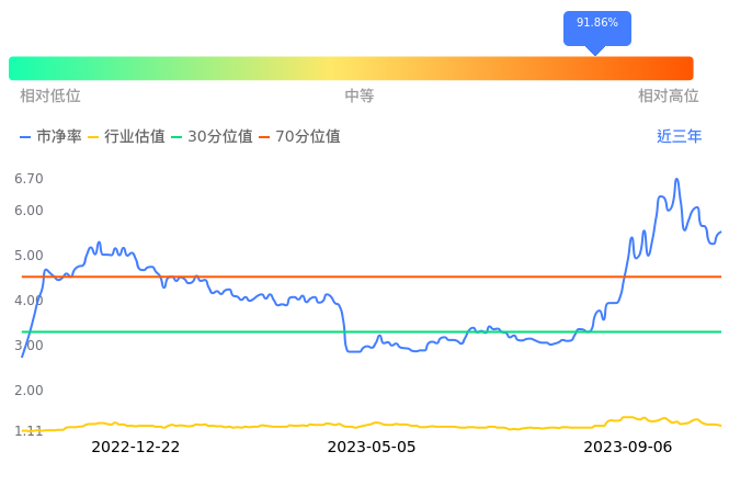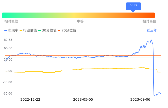 2023年09月07日,首创证券上涨6.39%收于25.64,今日成交金额28.61亿元。下文将从市盈率PETTM、市净率PB、市现率3个角度去分析公司估值情况。