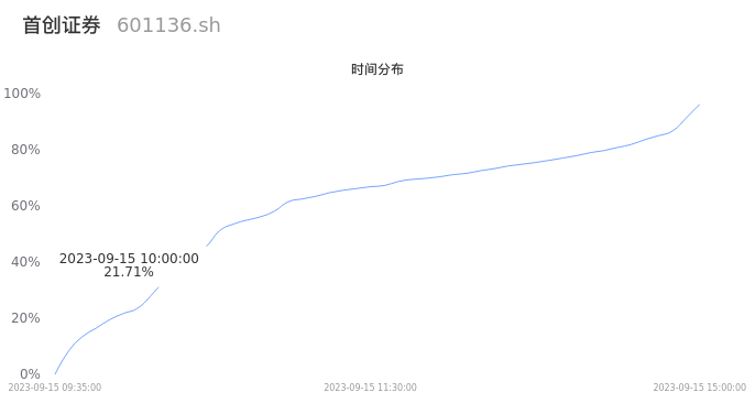 601136首创证券2023年09月15日成交42.22万手,成交金额9.35亿元,相较昨日缩量7.01万手,换手率15.45%,成交活跃。