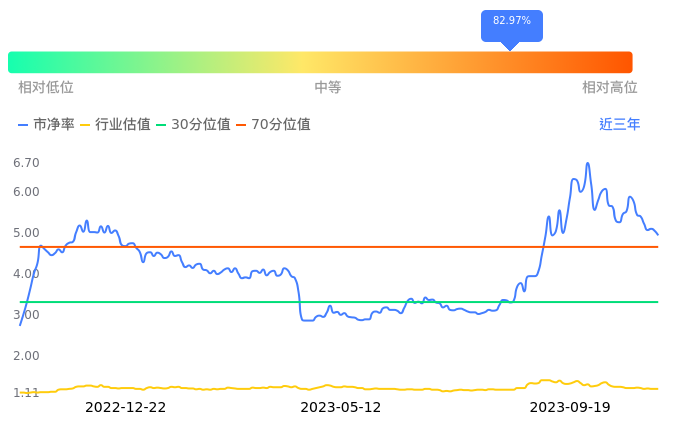 2023年09月20日,首创证券上涨2.65%收于22.11,今日成交金额12.07亿元。下文将从市盈率PETTM、市净率PB、市现率3个角度去分析公司估值情况。
