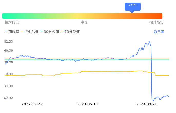 2023年09月21日,首创证券上涨1.72%收于22.49,今日成交金额12.50亿元。下文将从市盈率PETTM、市净率PB、市现率3个角度去分析公司估值情况。