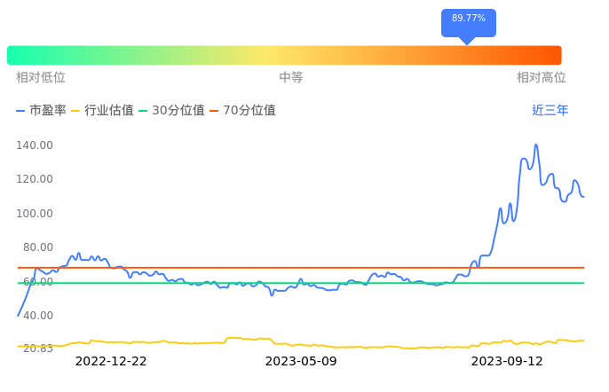 首创证券当前市盈率PETTM为109.73,在所属的证券中,市盈率PETTM排42名。前5名分别为国泰君安PETTM12.18、华泰证券PETTM12.32、国信证券PETTM13.88、广发证券PETTM14.02、中国银河PETTM14.33。从PETTM估值走势数据来看,首创证券当前市盈率PETTM为109.73,超过近3年89.77%的历史数据。