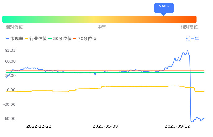 2023年09月12日,首创证券下跌0.80%收于23.53,今日成交金额11.81亿元。下文将从市盈率PETTM、市净率PB、市现率3个角度去分析公司估值情况。