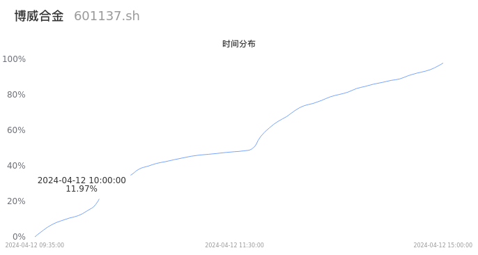 根据成交分布分析,该股票当天放量成交,成交清淡。时间上看,早盘前半小时成交量占据当天总成交量的11.97%;价格上看,成交呈现中间峰。成交分布分析主要研究股票成交的分布特性,不具有预测功能,请知悉。