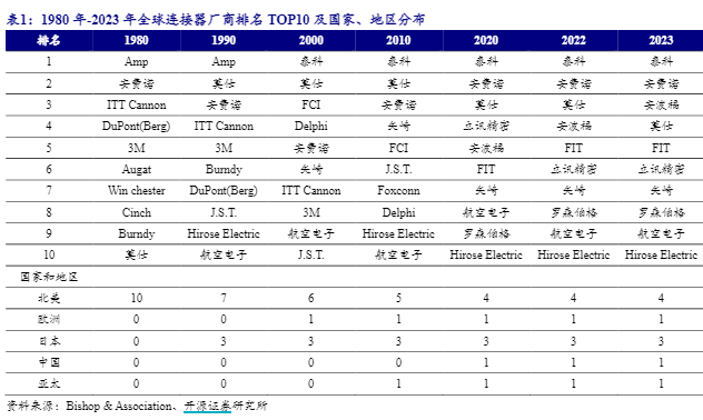 根据开源证券7月的报告,全球连接器行业集中度高,而我国本土厂商正逐步获得话语权。据BishopAssociates的数据,截至2023年,全球前10家连接器制造商占据市场份额达52.6%,较2022年的51.9%略有提升。泰科电子、莫仕、安费诺这三家大型厂商市场份额约占全球总体份额的30%以上。国产厂商如立讯精密,正利用地缘因素充分整合供应链优势,服务与快速反应能力以及产品成本与质量控制能力一流。随着上下游产业向国内转移,中国逐渐成为各类电子产品和原材料的重要生产基地。