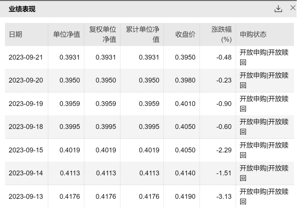 其中,将天孚通信作为头号重仓股,鹏华创新未来近期表现颇受市场关注。Wind数据显示,在本周一,该基金净值跌破“0.4”,随后几个交易日,该基金净值仍接连下行,截至昨日的单位净值为0.3931。