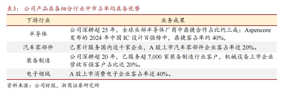 公司凭借对多个聚焦行业的业务形态、业务需求、业务模式的深刻理解和服务经验沉淀,为全球累计超50,000家客户提供数智化转型,实现“智能+”变革。公司大型集团客户包括复旦微电子、东富龙、老板电器等众多样板案例,专精特新客户近800家。在中国台湾地区,公开发行上市企业公司业务的覆盖家数已达77%;而在中国大陆地区,公司在制造业ERP软件市场销售份额位居本土厂商第一,达14.8%。
