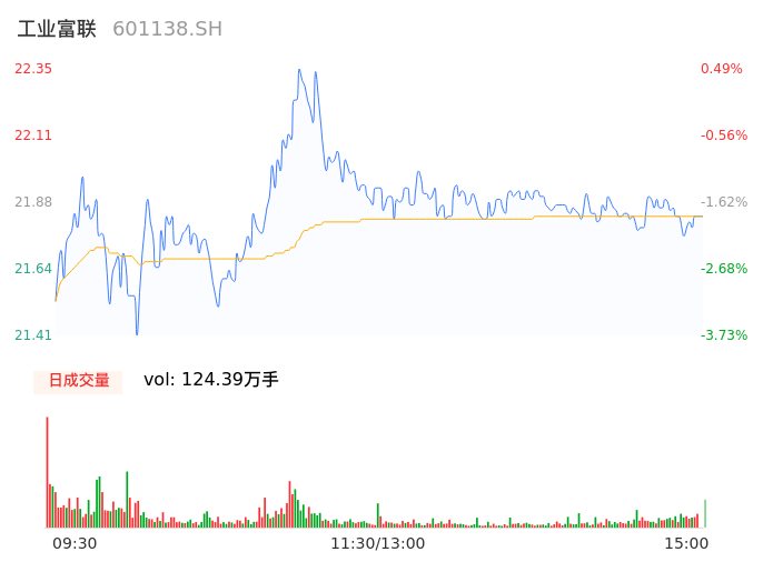 04月16日,工业富联收报21.81,股价涨幅-1.93%,成交金额27.15亿元,换手率0.63%。