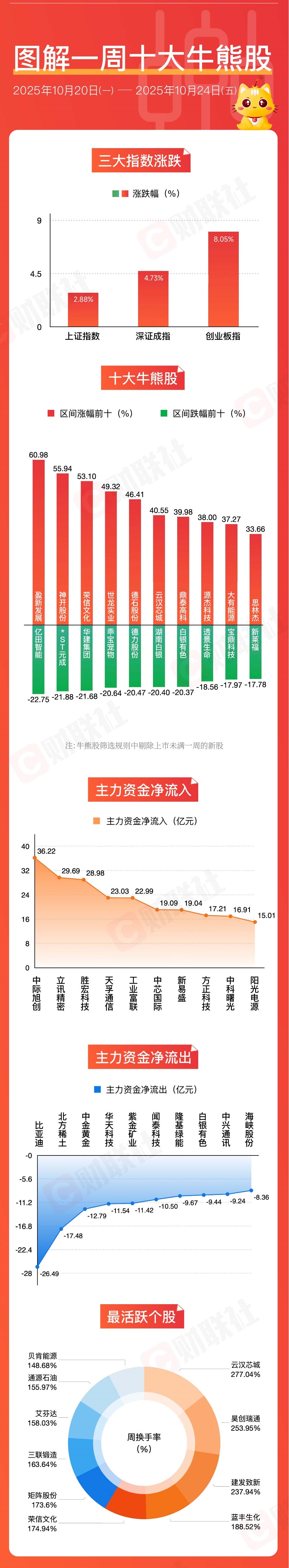 本周主力资金净流入方面,中际旭创、立讯精密、胜宏科技、天孚通信、工业富联主力资金净流入超20亿元。主力资金净流出方面,本周比亚迪、北方稀土、中金黄金、华天科技、紫金矿业、闻泰科技主力资金净流出超10亿元。